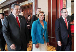 Presiden Susilo Bambang Yudhoyono, didampingi CEO Overseas Private Investment Corporation Elizabeth Littlefield (tengah) dan Duta Besar Amerika Serikat untuk Indonesia Scot Marciel, sebelum memberikan sambutan dan membuka Konferensi Internasional Ke- |
